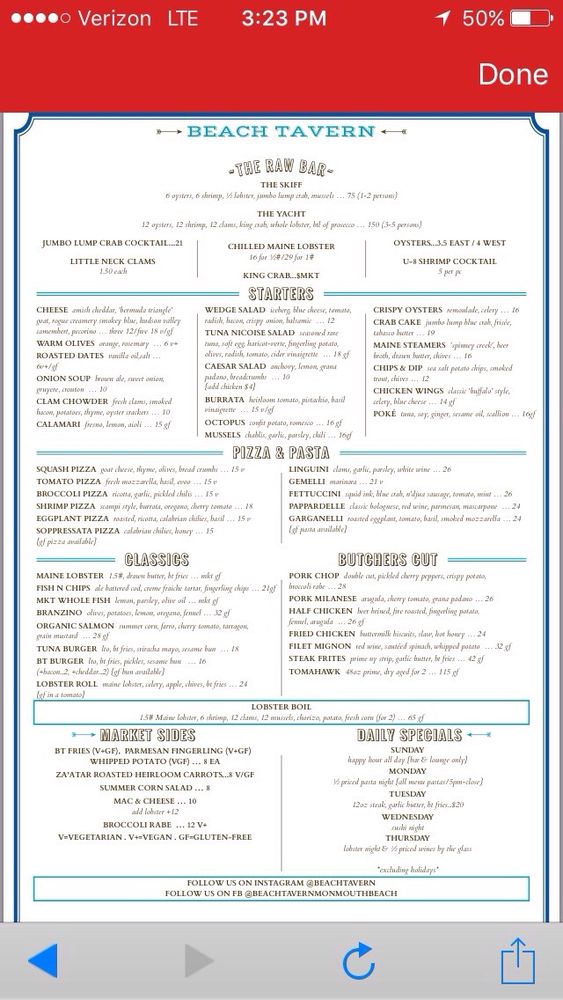 Introducing Beach Tavern, a New American restaurant located in Monmouth Beach, NJ. This casual yet upscale eatery offers a variety of options for all types of diners. The menu features dishes like crispy chicken wings with Beach Tavern buffalo sauce, mozzarella sticks, and their signature Beach Tavern cheeseburger. Customers rave about the delicious food, great service, and tropical patio ambiance. The outdoor seating area provides a scenic view of the marina and Shrewsbury River, adding to the overall nautical experience. With vegan and vegetarian options available, as well as a full bar and happy hour specials, Beach Tavern is the perfect spot for lunch, dinner, or special events. Don't miss out on this gem for a delightful dining experience.